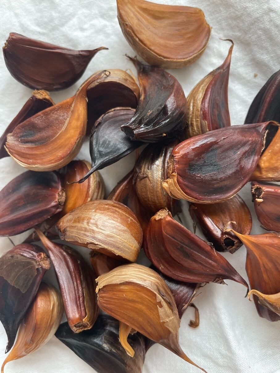 土づくりからこだわり、農薬を使わずに育てたにんにくを、じっくりと発酵させて仕上げています。